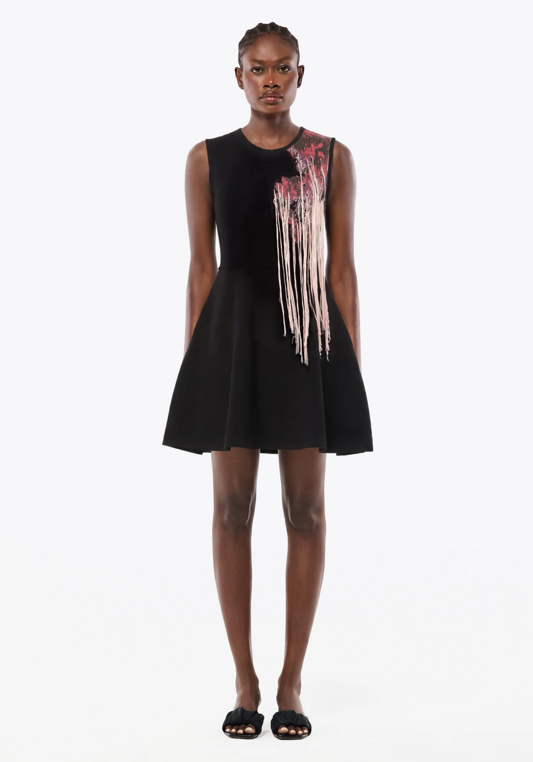 - Vestido con cintura definida y falda acampanada